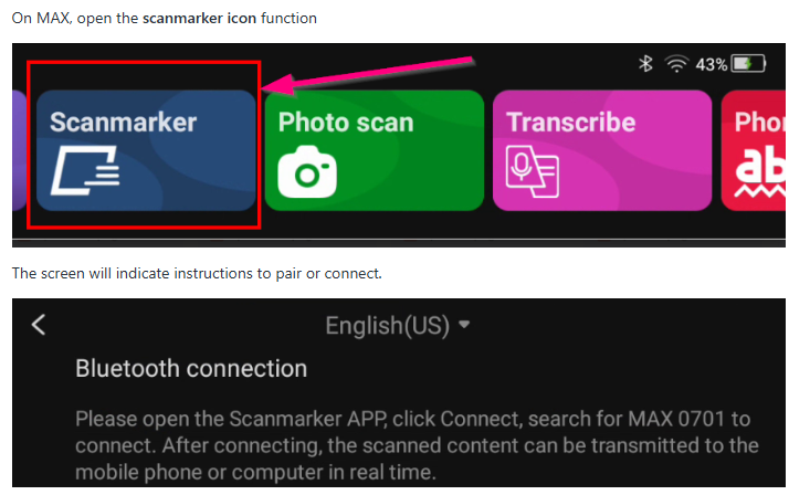 Next time automatic connection: tap the Scanmarker icon on your scanner /pen reader device and it will auto-connect.